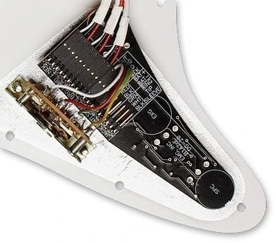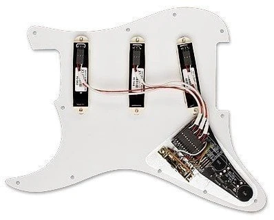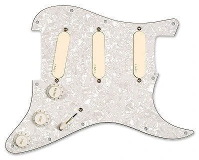 David Gilmour is recognized the world over for his revolutionary and incomparable sound with the legendary Pink Floyd and his work as a solo artist. When you hear the tones coming out of his red Strat you’re hearing his signature EMG Pro Series system: the DG20. This set utilizes our ivory Alnico loaded SA single coil pickups, an EXG Guitar Expander for increased treble and bass frequencies, and an SPC presence control to enhance your Strat’s earthiness and mid-range. The system comes prewired on a custom 11-hole white pearl pickguard with white knobs for easy installation.