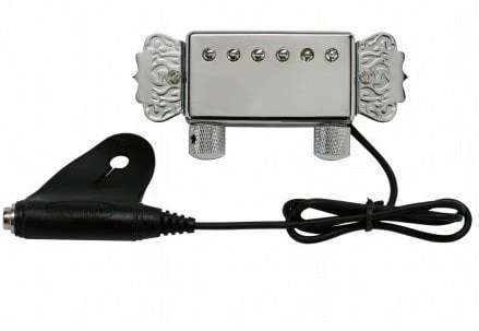 Soundhole Pickup System with vintage bold sound, no hum, no EM noise. No battery requiered for operation. Volume and tone controls are under the strings, at your fingertips. Humbucker type of pickup. Outside jack version. Colour: Chrome. Specifications: 100% Shielded no-noise pickup, Humbucker pickup, Ceramic Magnet, 1 Volume, 1 Tone, Passive Control- No battery required
