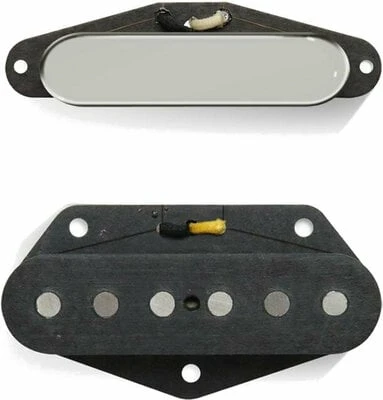 Scatter-wound by hand with 43AWG plain enamel wire on both bridge and neck, these coils are pure Broadcaster heaven. This is the hottest of the four sets (Flat ‘50, Flat ‘52, ‘55 Stagger and ‘68 Stagger) with a thicker zinc plated steel baseplate, flat profile magnets and authentic vintage ‘flat top’ deep-drawn brass cover; the Flat 50s have a simply massive sound. Chunky bottom-end and snarling mids create a throaty tone with excellent natural sustain that can really push a tube amp hard.