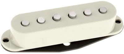 Vertical humbucker pickup in single-coil format that is suitable for use in all 3 position on a ST-style electric guitars, even though it was originally created to be a warmer bridge-position companion to the DiMarzio’s HS-2 humbucker. Yngwie Malmsteen, Swedish guitarist and bandleader known for his neoclassical metal playing style, adopted this model for his standard neck and bridge pickup, and almost overnight acquired the reputation of being a high-powered metal pickup. This is not really the case: this pickup is actually a smooth and relatively quiet and produces a sweet overdrive tone without jagged edges. It delivers a slightly warmer-than-usual Strat sound. What Yngwie discovered is that these qualities combine perfectly with a heavily distorted amp, because the sound will not get muddy or messy. This pickup is also very versatile – it is a noise-free pickup perfect in a live situation or in the studio. It combines in middle and neck positions with bridge humbuckers like PAF Pro, PAF, Air Classic and Norton. It is equipped with a 4-conductor wiring and an Alnico V magnet. Output: 93. DC resistance: 23.72. White cover.