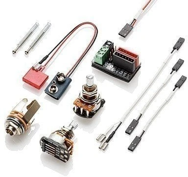 Active pickup – humbucker for electric guitar with alnico magnet. It is traditionally used as a neck pickup, especially for its dense, aggressive sound, which makes it an ideal pickup for the backing game and can be used everywhere, from dirty blues to extreme metal. Its most suitable use is in combination 81 grasshopper / 85 neck. The package includes an exclusive power system without the need for soldering, which includes complete cabling for installation, input for jack, two volume potentiometers, Tone and a connector for a 9V battery. Brushed Gold color design