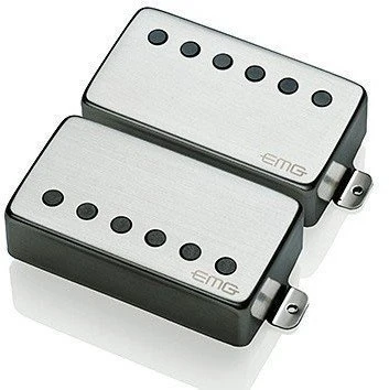 Set of humbucker pickups that consists of the JH-N pickup (neck) and the JH-B pickup (bridge) and features EMG Metal Works finish and EMG’s Solderless Installation System components. Both pickups were patterned after the pickups James Hetfield (Metallica) had used for 30 years. This set captures the clarity and punch of a passive pickup and still retains the legendary active tone that moulded a generation. The JH-N has individual ceramic poles and bobbins that feature a larger core and are taller which produces more attack, higher output, and fuller low end in the neck position. The JH-B uses the same type of core but has steel pole pieces, unlike the 81 that uses bar magnets. This produces the familiar tight attack with less inductance for a cleaner low end. Metal Works consists of six stainless steel cap options for any of EMG’s active or passive humbucker pickups, with striking new designs that offer players and instrument builders a broader range of premium cap options. Chrome finish.