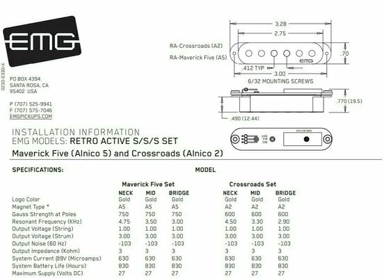 Make sure to check the instructions for pickup measurements before purchasing to compare your existing pickups with EMG models.