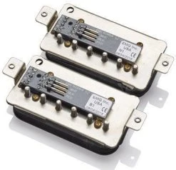 Inspired by the varied guitar tones created in the 70’s, the EMG Super 77 humbucker set brings grit and edge that responds to your playing like nothing you’ve heard before. With a newly designed plug-on preamp and classic open coil look, you’ll get the response of a traditional humbucker with the benefit of a clean, noise free, low impedance output. This traditional design featuring ceramic magnets is available in black and zebra color options for a truly vintage presentation. The Super 77 can clean up with simple volume adjustments and soft picking, while aggressive playing and more output will produce a dirtier sound; the control is in your hands. By taking traditionally copper wound passive pickups with ceramic pole pieces and adding the new plug-on preamp, the EMG Super 77 fits any genre or style of playing. Having the look you want and versatile tone you need has never been easier than the solderless plug & play Retro Active Super 77 set. Color: Black. In the Box: Package Includes EMG’s exclusive Solderless Install System: 2 25k volume pot – 2 25k tone pot – 1 battery bus – 1 stereo output jack – 1 two pickup in/out bus – 2 pair mounting screws and springs – 2 pickup cables – 4 connect cables – 1 output cable – 1 battery cable.