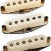 Fender Custom Shop Fat ’60s Strat pickups deliver sweet 1960s single-coil Stratocaster sound with plenty of crisp articulation. The overwound design gives these pickups added low-end punch for an extra shot of modern attitude. Custom Shop Fat ’60s pickups are outfitted with beveled alnico 2 magnets, which offer warm lows, rich midrange and mellow highs, capturing the sound of aged pickups from the early ’60s for luscious vintageinspired tones. The middle pickup is also reverse-wound reverse-polarity (RWRP) for superior hum cancelation. Features: Formvar magnet wire, Reverse-wound reverse-polarity middle pickup, Beveled alnico 2 magnets for warm, sweet output, Period-correct cloth wire and fiber bobbin, Includes installation hardware.