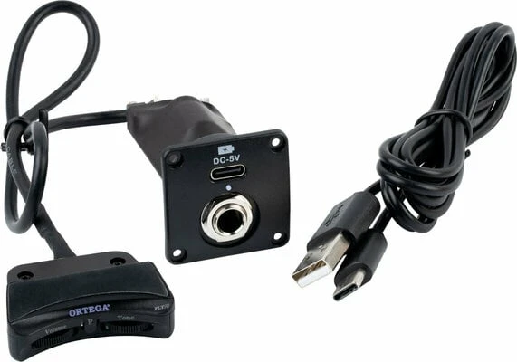 - Includes a piezo pickup (guitar), cable clamp, and USB-C cable