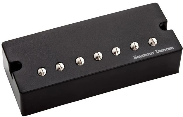 Passive humbucker pickup for bridge position of 7-string guitar that was forged to fathom the deepest of metal tunings, searing highs, grinding mids and tight bass perfect the tone of modern metal. It combines a large ceramic magnet with custom winding specs, which results in a perfect blend of note articulation, saturation, pick attack, and one of the most brutal chugs you will ever hear from a humbucker. It has incredible harmonic content across all frequency ranges, and an insanely tight bass response. The pickup has a seriously aggressive high gain sound that is lively, yet completely controllable. On clean amp settings, it still knows how to behave and provides those bell-like clean tones. It can be pair with the Seymour Duncan’s Sentient neck pickup for the ultimate progressive metal sound and versatility. Hand built in Santa Barbara, California, the pickup uses a large ceramic bar magnet, nickel silver bottom plate, 4-conductor lead wire for multiple wiring options, and is vacuum wax potted for squeal-free performance. This model features a standard active mount size with a black soapbar cover with one row of exposed poles for a modern look.