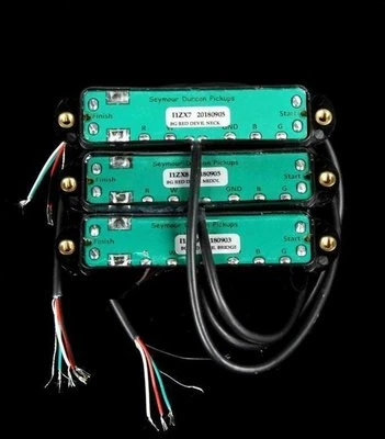 Set of Billy Gibbons (ZZ Top) signature model humbucker pickups in single coil format. Smoking- hot PAF for Strat-style single coil guitars—perfect for Texas blues. The Red Devil is true hum-cancelling humbucker tone in a single coil size rout. It features neck, middle and bridge position pickup, ’59 PAF tone in strat size single coil format, dual coil, Alnico 5 magnets, 4-conductor lead wire for multiple wiring options, and vacuum wax potting for squeal-free performance. DC Resistance: 13. 95 kOhm, Shielded 4-core connection cable, Color: Black