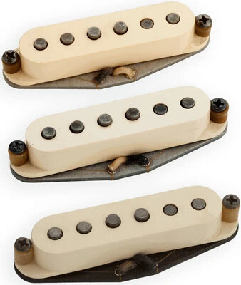 Take your Stratocaster on a ride through decades of seminal genre defining tones from rock, surf, country and blues with the Antiquity II Surfer vintage Stratocaster pickups. The Antiquity II Surf Neck provides that smooth and chimey bounciness that only a Stratocaster can produce. Specially calibrated alnico 5 rod magnets and custom scatter wound coil give the treble attack a subtle sweetness without losing any of the harmonic sparkle. The middle pickup in the set is RW/RP for the perfect hum-free cluck in the 2 and 4 positions. The Antiquity II Surf for Strat Custom Bridge pickup is wound to have extra midrange and output for a more versatility. Wind 50% hotter for more mids, and then slightly soften the treble attack by degaussing the alnico 5 rod magnets. It cuts through the mix much more easily than a traditional Strat bridge pickup, while still retaining that classic Stratocaster tonal character. Solos will jump out more musically, and chords will ring with the perfect amount of midrange sparkle. Pickups should be installed in the guitar as follows, from the strongest (to the bridge) to the weakest (to the neck).