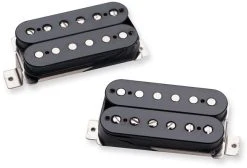 Set of Vintage Blues Bridge / Neck humbuckers for six string guitars. While these vintage style coils give the 59 Model humbuckers an airy quality that keeps them planted firmly in the PAF family, the alnico 5 bar magnet, and vacuum wax potting have been added to compensate for lighter guitar strings and louder amplifiers than were ever used in the 50s. The result is a pickup with tons of old-school tonal character, but with a brighter top end, and a more compressed sound. The 59s are great for all types of rock and bluesIn addition to the alnico 5 magnet and wax potting, we hand build the 59 Model with a variety of traditional vintage treatments, such as 42AWG plain enamel mag wire, long legged nickel silver bottom plate, vintage single-conductor braided push-back lead wire, and no logo. – Bridge PU DC resistance: 7,57 kOhm – Neck PU DC resistance: 6,54 kOhm – Number of Conductors: 1 – Colour: Black.