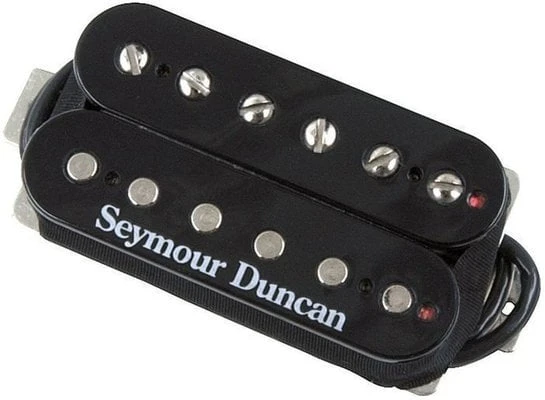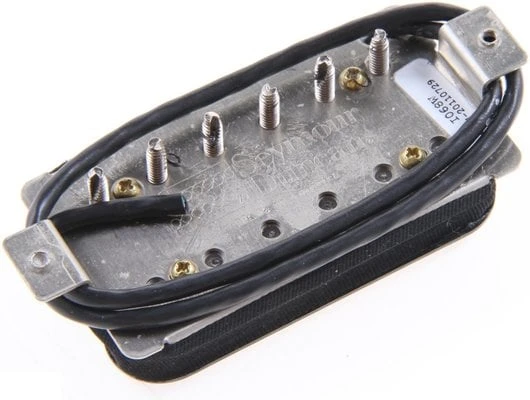 Custom overwound PAF-like humbucker pickup with moderate output that is perfectly voiced for supreme blues, rock, and metal clarity. It uses a small ceramic magnet and custom wound coils to deliver great responsiveness while maintaining clarity for big chords. It has a bright upper-midrange, which helps the notes jump out when playing clean, and provides great harmonic content when playing with gain. Pickup has a bright, airy, and focused drive, making it a great choice for warmer guitars with a prominent midrange. It is hand built in Santa Barbara and uses a small ceramic bar magnet, nickel silver bottom plate, 4-conductor lead wire for multiple wiring options, and is vacuum wax potted for squeal-free performance. Black cover.