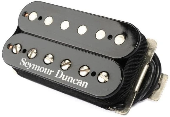 High-output ceramic humbucker for bridge position that was launched in 1980 and is perfect for rock and metal players. It uses a massive ceramic magnet and hot coil windings to deliver full-bodied rock and metal tones with powerful upper mids for extra cut and grind. It is great for hard-hitting, crunchy rhythms, and the lead tones scream with wild harmonics. It also remains tight with low tunings. Pickup is handcrafted in our Santa Barbara and uses a large ceramic bar magnet, nickel silver bottom plate, 4-conductor lead wire for multiple wiring options and is vacuum wax potted for squeal-free performance. It can be matched with Seymour Duncan’s Distortion neck pickup for complementary lead and rhythm tones, or with a Jazz neck model for a wider range of sounds. Black colour.