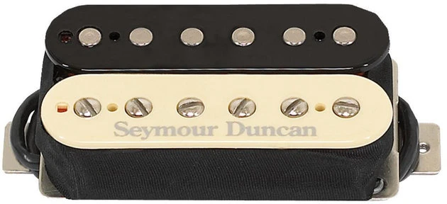 Neck version of original high output ceramic humbucker design, perfectly calibrated to pair with the Duncan Distortion Bridge for a full frontal heavy assault. Originally known as the SH-7 Seymourizer, the Duncan Distortion neck pickup is specifically designed for use with the matching high output bridge version. It is hot enough to deliver smooth, fluid solo tones under high gain, while still producing bell-like clean tones. Pair with the Duncan Distortion bridge model for a killer high output setup. Hand built in Santa Barbara, CA factory, the Duncan Distortion uses a large ceramic bar magnet, nickel silver bottom plate, 4-conductor lead wire for multiple wiring options, and is vacuum wax potted for squeal-free performance. Color: Zebra.