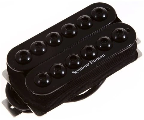 High output with a huge, unapologetic sound, the 7-String Invader bridge delivers crushing metal tone for extended range guitars. Installing an Invader changes your guitars DNA. No matter how dangerous your stock pickup claims to be, the Invader will transform any guitar into the mean, heavy sounding beast you always knew it could be. The Invaders power comes from the combination of specially overwound coils and three large ceramic magnets, along with its striking oversized metal oxide pole pieces. These expand the overall magnetic field and widen the frequency spectrum, which is why every note played through an Invader sounds so rich. It delivers the thickest, and deepest, low end response of any passive pickup we make. Chords sound deep and almost subsonic with lower tunings, and balance nicely with the crunchy treble that keeps everything well defined. This passive 7-string humbucker comes in choice of a standard open-coil look or black metal humbucker cover, both in a classic passive mount that easily fits in any guitar with traditional routing. We also make it in a standard active mount size with a black soapbar cover with one row of exposed poles for a modern look..Match with the Invader 7-String neck model for a massive sounding high-output setup. Hand built in our Santa Barbara, CA factory, the Invader uses a three large ceramic bar magnets, oversized metal oxide poles, nickel silver bottom plate, 4-conductor lead wire for multiple wiring options, and is vacuum wax potted for squeal-free performance. DCR: 19.5, Magnet: Ceramic, Cable: 4C Shielded, Color: Black