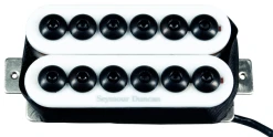 Bridge humbucker pickup for Seymour Duncan electric guitar. The sensor offers high performance, rich full sound and a stylish design. It contains special wound coils, 3 large ceramic magnets and large metal poles. This expands the overall magnetic field and frequency spectrum. Invader is Seymour Duncan’s most powerful passive sensor. It is also suitable for alternative tunings. In combination with the Invader neck pickup, it delivers a massive modern tone and high performance. The sensor is handmade in Santa Barbara – California. It contains 3 ceramic magnets, large metal poles, a bottom plate made of silver / nickel, 4 wires for flexible connection options and a vacuum wax closure. Color: white.