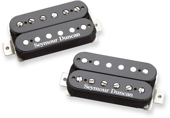 Set of passive humbucker pickups. The Pearly Gates neck captures all the mojo of the original neck pickup from Billy Gibbons’ 1959 Les Paul. It is a PAF with a unique tonal character, and more midrange than typical humbuckers from that time. The result is a neck pickup that cuts through with stronger tailored mids, but still has the open and airy treble attack of the alnico 2 bar magnet. Combined with a warm, spongy low end, this pickup is great for both rhythm and lead playing. Seymour discovered Billy’s bridge pickup had slightly more output than most PAFs, which helped to give it the extra drive that make this pickup so special. The alnico 2 bar magnet keeps the high end sounding airy but focused, and the midrange emphasis gives it a unique Texas sizzle. It really has a growl all its own, and will help to bring any humbucker style instrument to life. – Number of Conductors: 4 – Bridge PU DC resistance: 8,21 – Neck PU DC resistance: 7,3 – Colour: Black.
