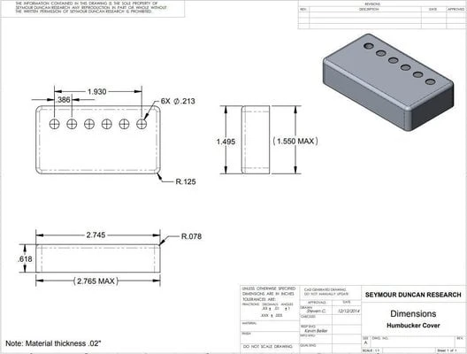 Gold plated humbucker cover Seymour Duncan is made of nickel silver, and fits all regular 6-string humbucker models.