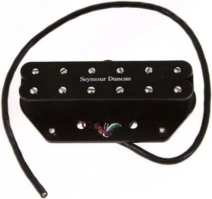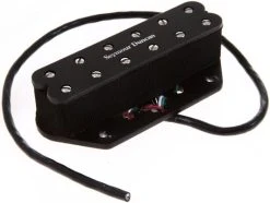 Full sounding, medium-output single coil-sized humbucker pickup for bridge position of Telecaster electric guitars that has a nice, even bass and treble response with a slightly scooped midrange. It gives it that classic, full bodied humbucker sound great for everything from country to rock. The 4-conductor lead wire provides an access to parallel and split wiring options for added versatility. This pickup is a drop-in replacement for a Fender American Standard Telecaster sized pickup route. It is hand made in Santa Barbara, CA, and uses a ceramic bar magnet, 4-conductor lead wire for multiple wiring options, and is wax potted for squeal free operation. Black cover.