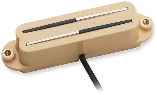 The Vintage Rails is a single coil sized humbucker with a unique split-blade design that is meant to be wired in parallel to give you a sparkly, vintage style single coil tone without the Strat hum. In the bridge position, this pickup will be tight and crisp, and will give you lots of vintage Strat snap. For added versatility, its 4-conductor leadwire gives you the option of switching it into series wiring (using a pushpull or mini-toggle) for hotter, fatter humbucker tone. This pickup is a drop-in for any single coil pickup route.Pair with Vintage Rails Strat – neck BlackHand built in Santa Barbara, CA, the Vintage Rails for Strat comes with a ceramic magnet, 4-conductor lead wire, and is wax potted for squeal free operation. Color: Creme. Specs: DCR: 2.9 – MAGNET: CERAMIC – CABLE: 4C SHIELDED.