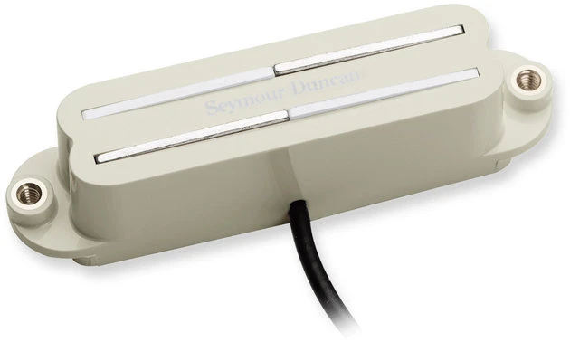 The Vintage Rails is a single coil sized humbucker with a unique split-blade design that is meant to be wired in parallel to give you a sparkly, vintage style single coil tone without the Strat hum. In the bridge position, this pickup will be tight and crisp, and will give you lots of vintage Strat snap. For added versatility, its 4-conductor leadwire gives you the option of switching it into series wiring (using a pushpull or mini-toggle) for hotter, fatter humbucker tone. This pickup is a drop-in for any single coil pickup route.Pair with Vintage Rails Strat – neck BlackHand built in Santa Barbara, CA, the Vintage Rails for Strat comes with a ceramic magnet, 4-conductor lead wire, and is wax potted for squeal free operation. Color: Parchment White. Specs: DCR: 2.9 – MAGNET: CERAMIC – CABLE: 4C SHIELDED.