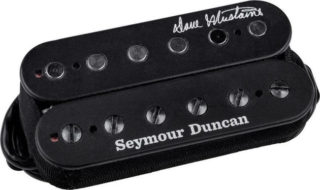 Electric guitar humbucker pickup from Dave Mustaine Signature. Thrash Factor humbucker recreates the unique tone of Dave’s favorite JB, used to record some of his most iconic albums. In 1990 Megadeth released their landmark fourth album, “Rust In Peace”. Widely regarded as one of the most iconic and influential metal albums of all time, its breakneck rhythms, intricate arrangements, shifting time signatures, and blazing dual lead guitar lines showcased the band’s mastery of their craft. During the recording of the album Dave relied heavily on one guitar in particular, loaded with a Seymour Duncan JB in the bridge and 59 model in the neck. According to Dave, that JB had a tone that was different from an ‘off-the-shelf’ JB – and had become part of his signature sound. We worked closely with Dave to recreate the tone and feel of his favorite JB, ultimately altering the winding process in order to achieve the tone he was looking for – compared to the standard JB model, the Thrash Factor’s low end is tighter, the mids are slightly scooped, and the highs are more aggressive. Trembuckers have wider pole piece spacing, perfect for symmetrical positioning under the strings of guitars with a tremolo or wide spaced hard tail bridge (2” or wider from the center of the Low E to High E directly over the bridge pickup). The Dave Mustaine Signature Thrash Factor is hand built in Santa Barbara, California.