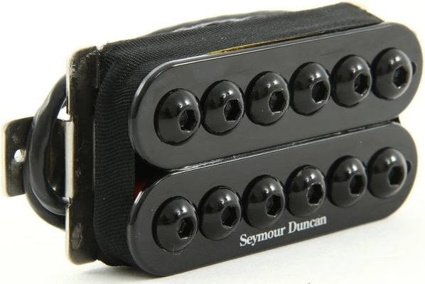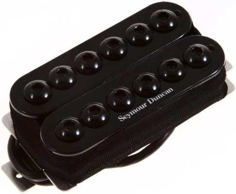 High-output passive humbucker pickup for bridge position that delivers loud, vicious sound look and distinctive look: it will transform any guitar into the mean, heavy sounding beast. Its power comes from the combination of specially overwound coils and three large ceramic magnets, along with its striking oversized metal oxide pole pieces. These expand the overall magnetic field and widen the frequency spectrum, which is why every note played through the pickup sounds so rich. Chords sound deep and almost subsonic with lower tunings, and balance nicely with the crunchy treble that keeps everything well defined. Pickup is hand-built and uses a three large ceramic bar magnets, oversized metal oxide poles, nickel silver bottom plate, 4-conductor lead wire for multiple wiring options, and is vacuum wax potted for squeal-free performance. This pickup can be matched with the Seymour Duncan’s Invader neck model for a massive sounding high-output setup. Black colour.